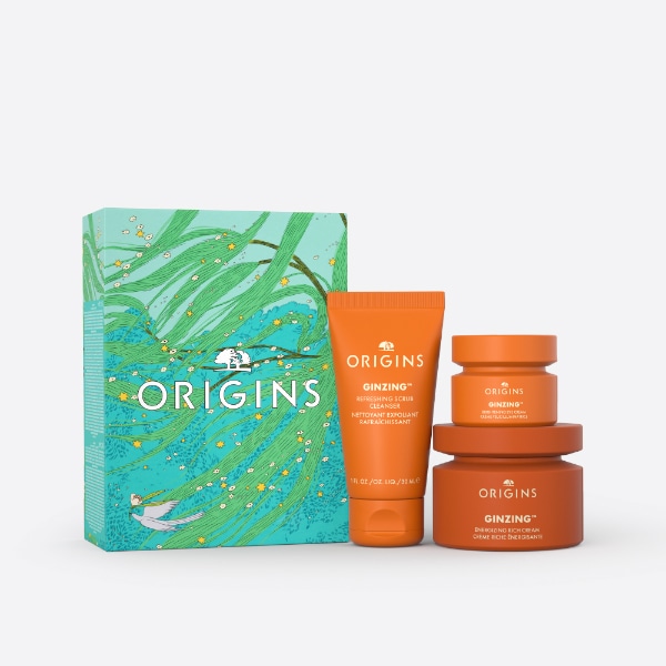 - Gift Smart. Glow Naturally.     - CLEANSE & GLOW ESSENTIALS Our Most-Loved Skincare Essentials ($77 Value)Benefit: 4 Skincare Favorites for Glowing, Healthy-Looking SkinCA $54.00    - 24 Days of Origins Essentials for Face & Body ($369 Value)Benefit: 24 Days of Skin-Loving GiftsCA $289.00    - MEGA-MUSHROOM Calming Essentials ($128 Value)Benefit: Soothe the look of redness and strengthen skin's barrierCA $99.00    - PLANTSCRIPTION™ Lifting & Firming Essentials ($185 Value)Benefit: 3 skin-firming favorites in 1 curated giftCA $145.00    - YOUTHTOPIA™ Plumping & Smoothing Essentials ($87 Value)Benefit: 2 Steps To Smooth, Plump, Bouncy SkinCA $72.00    - GINGER Mini Aromatic Hand & Body Trio ($53 Value)Benefit: A Sensorial Hydrating Hand and Body ExperienceCA $41.00    - GINGER Body Indulging Essentials ($126 Value)Benefit: Nourished, Soft Skin with 3 Full-Size Ginger Body GiftsCA $94.00    - SOUFFLE TRIO Nourishing Body Creams ($88 Value)Benefit: 3 Body Creams To Nourish And SoftenCA $65.00    - MULTITASKERS Four Mini Masking Essentials ($45 Value)Benefit: 4 Mini Face Masks for Holiday-Ready SkinCA $24.00